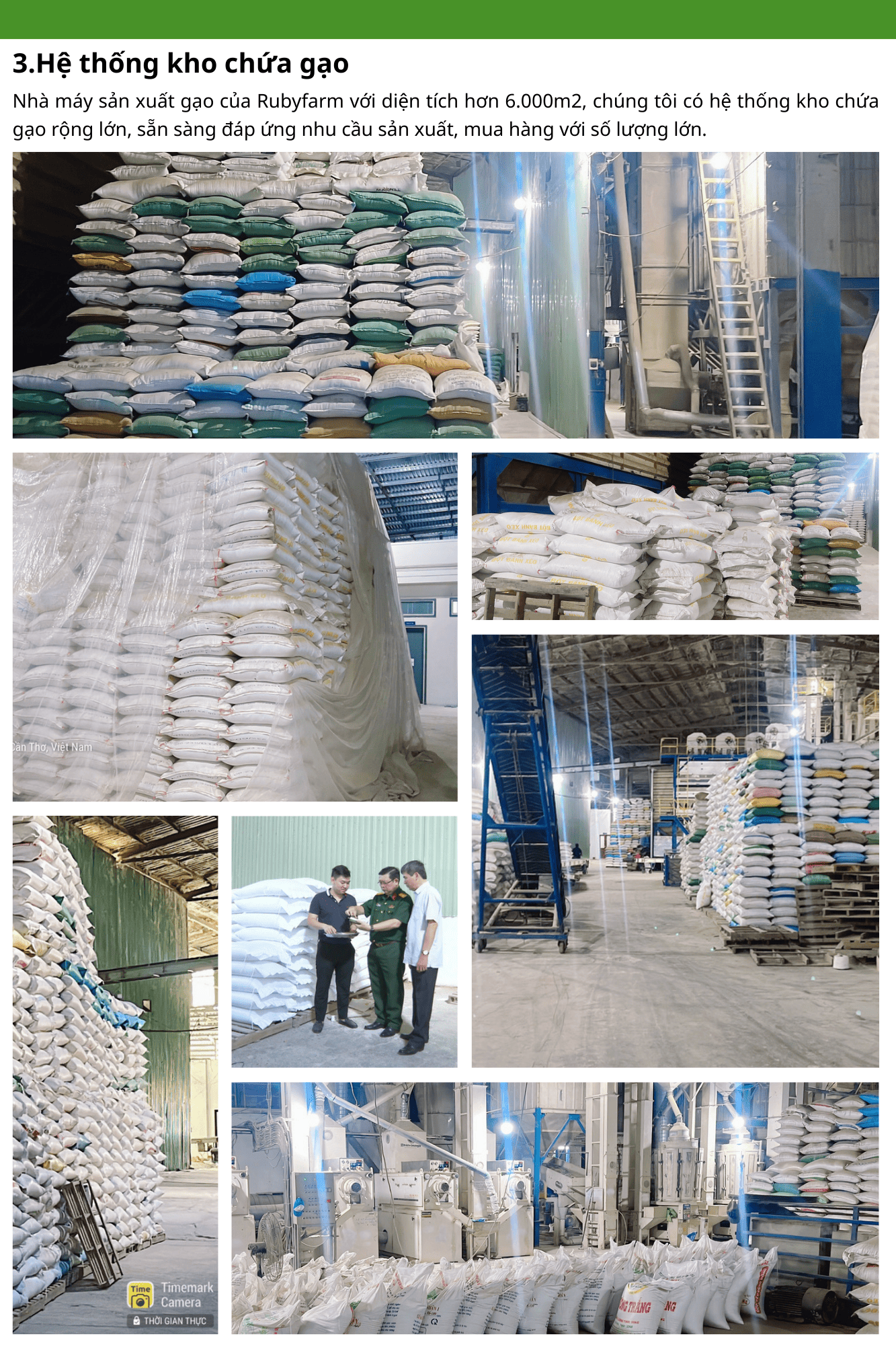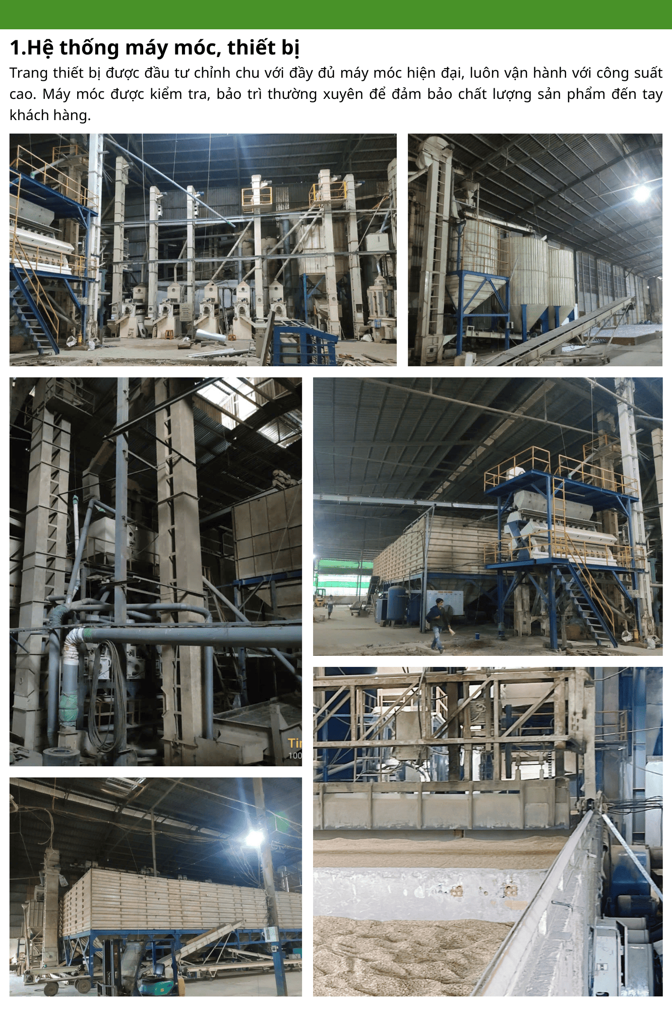 Đồng Xanh Mekong đã xây dựng một hệ thống nhà máy hiện đại, đầu tư máy móc thiết bị kỹ thuật nhập khẩu, vận hành theo dây chuyền công nghệ tiên tiến, nâng cao năng lực sản xuất. Với đầy đủ các trang thiết bị từ lò sấy, thùng chứa lúa khô, dây chuyền máy bóc vỏ, dây duyền lau máy, dây chuyền tách màu và kho chứa lúa số lượng lớn. Đồng Xanh Mekong khẳng định có thể đáp ứng nhu cầu mua hàng số lượng lớn của khách hàng, cũng như đảm bảo về mặt chất lượng sản phẩm.
